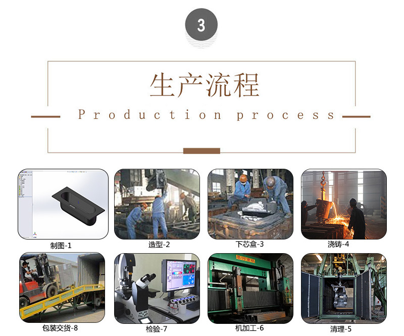 生產(chǎn)設(shè)備:樹(shù)脂砂鑄造、覆膜砂鑄造、失蠟鑄造、中頻電爐、爐前分析儀、退火爐等。